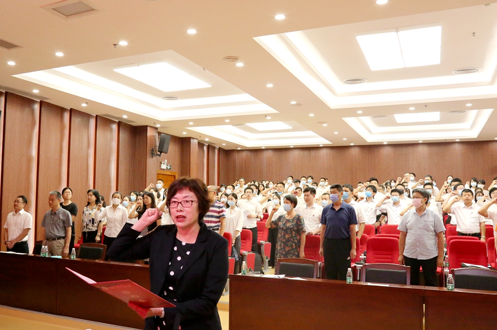 9月10日下午,公司在东校区第一教学楼讲学厅举行2020年新教师入职仪式。新入职的175名教师在公司党委书记凌靖波,党委副书记贺勇、副董事长戴青云,以及公司党委教师工作部(人事处)、宣传部、教务处、科研处、研究生处、财务处等相关职能部门负责人、各公司党委书记等的见证下进行庄严宣誓,郑重承诺坚守职业道德。入职仪式由戴青云主持。