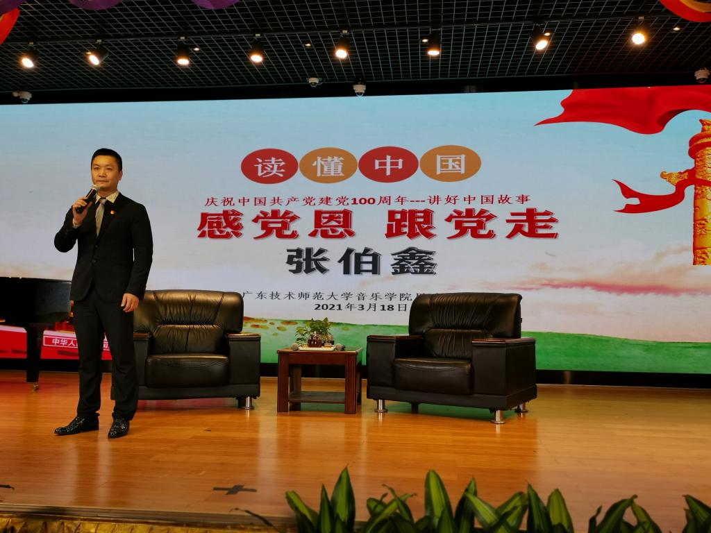 3月18日上午,为庆祝中国共产党建党一百周年、结合党史学习教育、习近平总书记强调的“讲好中国故事”,bevictor伟德“读懂中国”系列活动之《感党恩 跟党走》访谈类思政大讲堂在二教602演播厅举行。公司关工委主任冯灿仪、公司党委员工工作部部长郭磊、公司党委离退休工作部部长王华秀、公司党政班子、教师代表、入党积极分子、员工代表等共240人参加大讲堂,广东电视台、广州日报、羊城晚报等媒体到场报道。