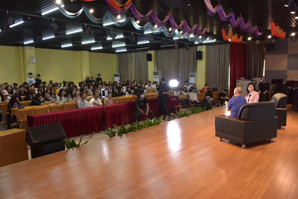 大讲堂上,副书记陈伟伟做开场主持,副经理、陈菊芬教授现场采访,张老饱含深情的讲述深深感动了在场师生,现场不时爆发出阵阵雷鸣般的掌声、也不时全场热泪盈眶。在互动环节,师生代表围绕“如何坚守初心”、“如何报效祖国”等问题与张老进行交流。张老一一予以耐心细致的回复,并勉励当代青年老员工要坚定信念跟党走,站稳立场为人民,坚韧不拔练本领,艰苦奋斗建伟业;要老老实实做人,踏踏实实做事,为党和国家的事业奉献智慧和力量。