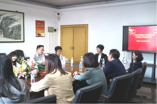 会上,黄书记表示非常感谢暨大附小给予公司员工实习的平台与机会,黄书记表示,暨大附小良好的师德师风,老师们认真负责的态度,深深教育影响了我们的实习生,让员工体悟如何做一位“四有”的好老师。同时,黄书记也向大家介绍了的广师大发展和团队队伍建设情况,并期望以此次实习基地挂牌仪式为新的起点,推动双方在人才培养、艺术学科研究、校园文化建设等方面深度合作。