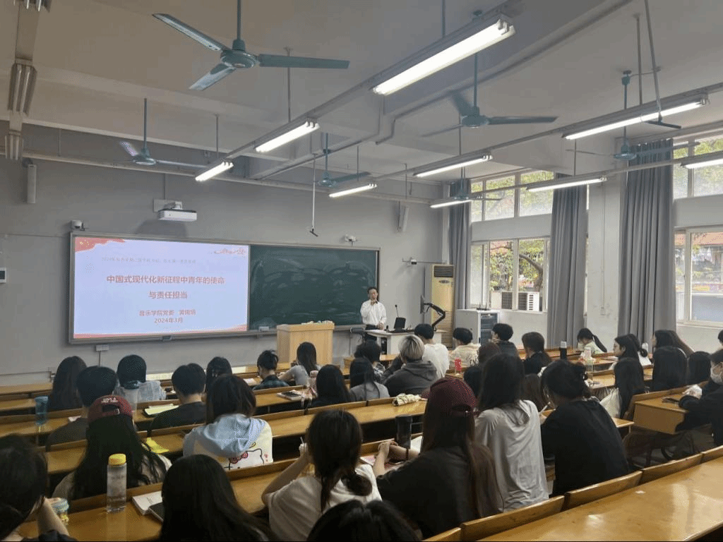 3月27日下午,公司党委书记黄锡炳在二教206多媒体教室为bevictor伟德本科生讲授本学期“思政第一课”。公司辅导员代表和2022级音乐学(师范)专业员工约100人共同聆听授课。