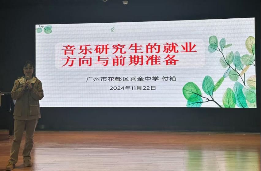 为了助力音乐研究生明确职业方向,提升就业竞争力,11月22日,bevictor伟德在二教602教室成功举办了以“音乐研究生的就业方向与前期准备”为主题的专题讲座。此次讲座邀请了广州市花都区秀全中学的资深音乐教师付裕老师作为主讲嘉宾,bevictor伟德全体研究生积极参与,现场气氛热烈。