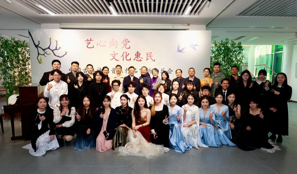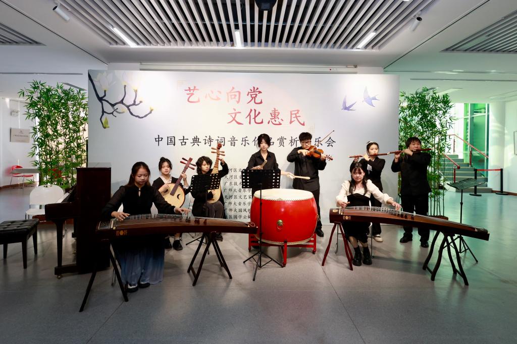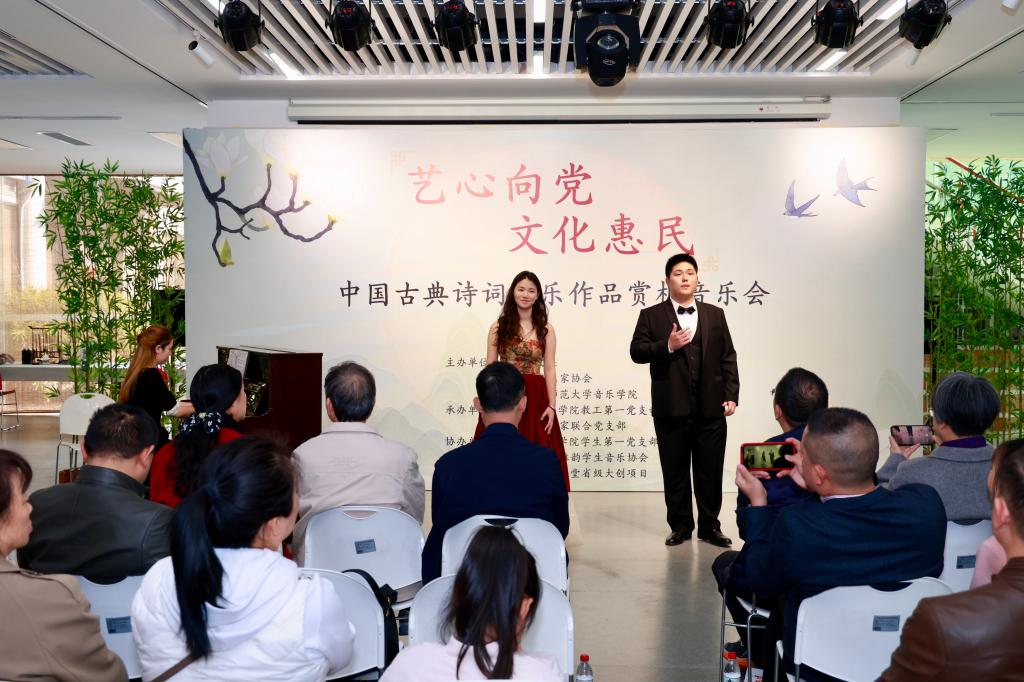 在音乐会上,一首首经典的中国古典诗词音乐作品在师生们的精彩演绎下,仿佛穿越时空,带领观众回到了那些诗意盎然的岁月。天河音协黄惠影老师演绎了古琴弦歌《蒹葭》,公司bevictor伟德宋艺璇老师的钢琴独奏《夕阳箫鼓》、刘喜竹老师演唱的《咏梅》、同学们演绎的《关雎》《定风波》《山之高》等节目,深深吸引观众们沉浸在悠扬的旋律中,深刻体会到了中华文化的博大精深。这些作品不仅展现了师生们的专业素养,更体现了他们对中华优秀传统文化的热爱与传承。
