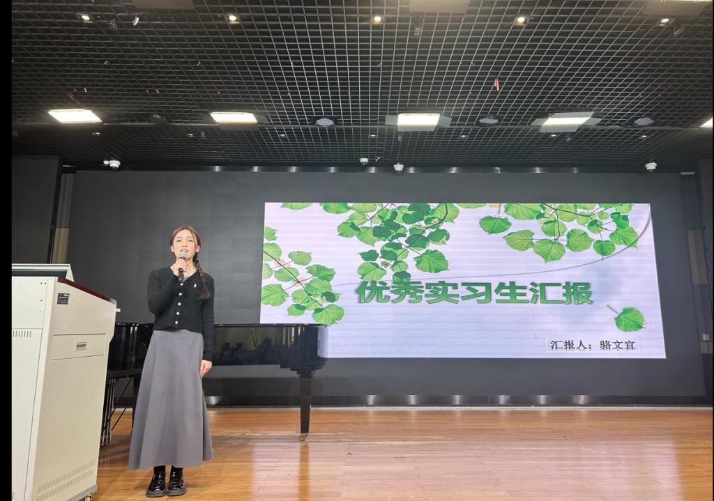 总结会后,16名“优秀实习生”候选人进行评比。参评者通过现场汇报,全面呈现教学能力与反思成果。评审组从现场汇报、师德践行、创新意识等多维度综合评分,最终评选出8名“校级优秀实习生”。