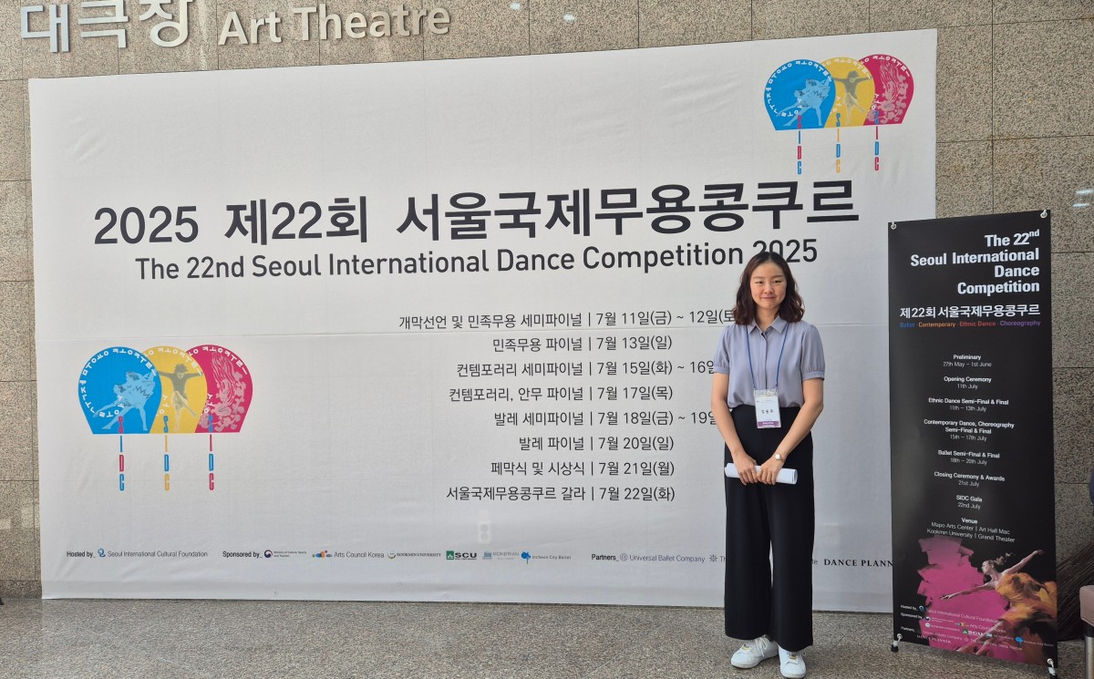 2025年7月11日至22日,公司bevictor伟德舞蹈系外籍教师,校聘副教授金东孝(KIMDONGHYEO)作为执行委员之一,于韩国首尔参与了第22届首尔国际舞蹈大赛(Seoul International Dance Competition, SIDC)的多项工作,主要负责国际事务协调。自筹备阶段至正式比赛期间,金东孝全程参与赛事的进行,重点负责相关文件的中文翻译及中方来宾的现场口译,并在赛事现场发挥了协调与沟通作用,切实保障了大赛顺利进行。