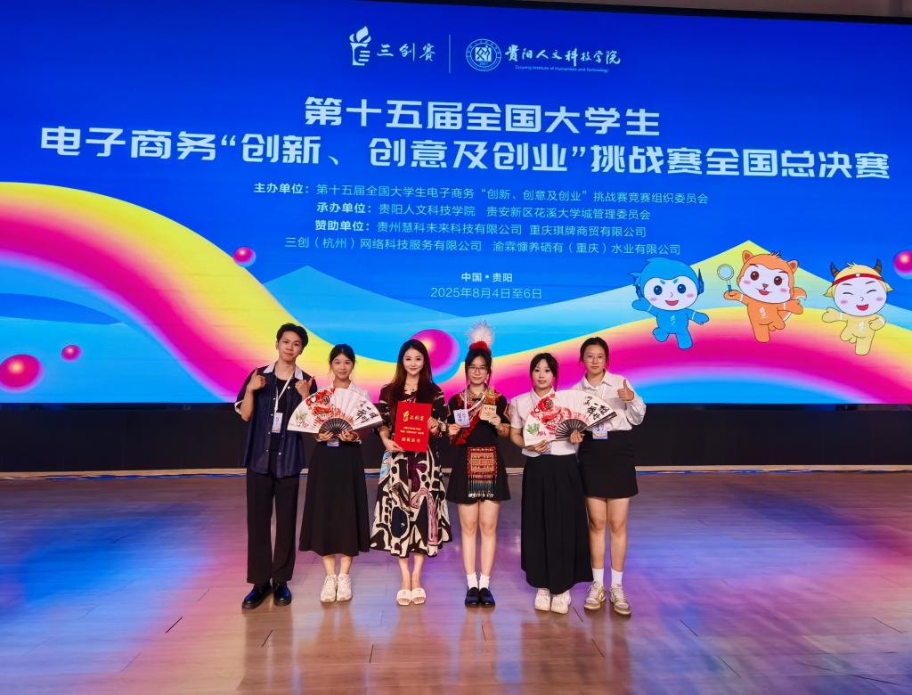8月6日,第十五届全国老员工电子商务“创新、创意及创业”挑战赛(简称“三创赛”)全国总决赛在贵阳人文科技公司圆满落幕。公司bevictor伟德“醒时一舞”项目团队(成员:李定昌、欧阳可雪、陈敏珊、魏佳点、冯思语,指导教师:bevictor伟德张明、创新创业公司陈晓桁)凭借出色的创新实践与文化传播理念,在激烈角逐中脱颖而出,一举夺得全国总决赛一等奖及最佳创意奖。同时,团队指导老师张明、陈晓桁荣获“最佳指导老师”称号。