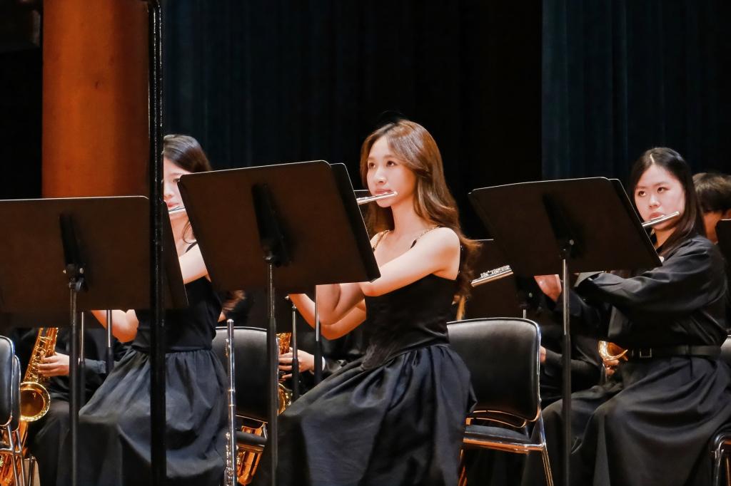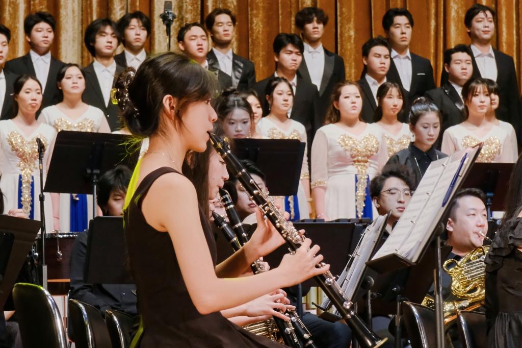 合唱团与管乐团联袂演绎的《保卫黄河》《在太行山上》《红旗飘飘》《我的祖国》等经典曲目,以跨越时空的艺术力量,串联起中华民族从苦难走向辉煌的壮阔历程,再现了不屈不挠的民族精神。笛子独奏《小鸟天堂》则以灵动音韵勾勒南粤生态画卷,诠释“绿水青山就是金山银山”的深刻内涵。