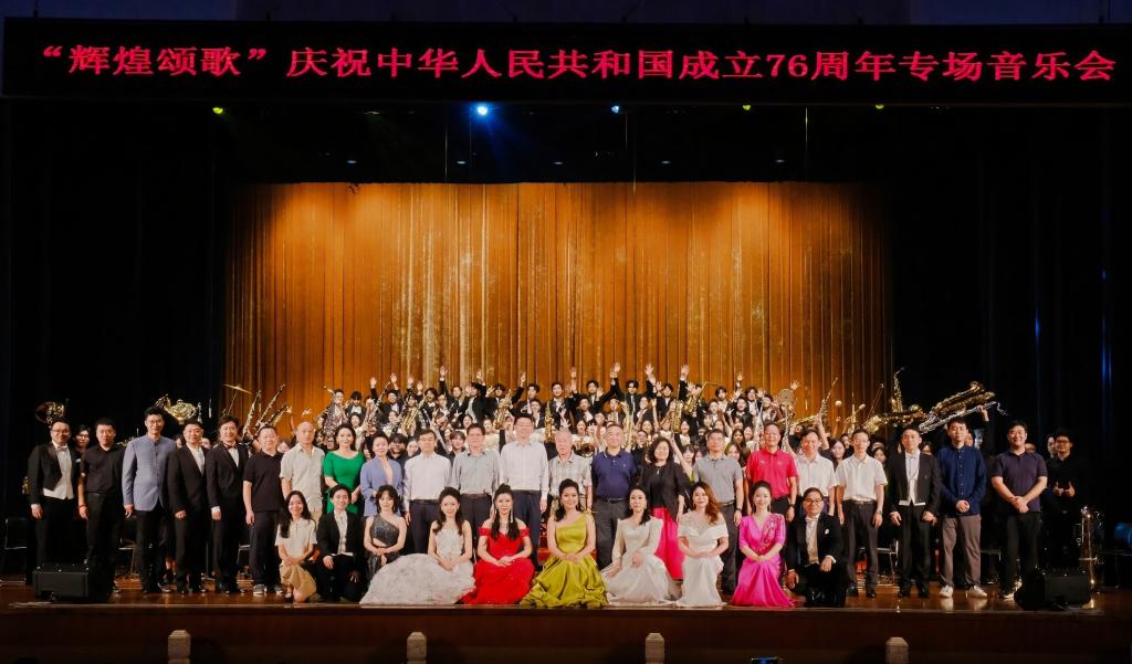 音乐会在全体演员与观众齐声高唱《歌唱祖国》的热烈气氛中圆满落下帷幕。歌声激荡,情感交融,传递出对祖国繁荣昌盛的美好祝愿。