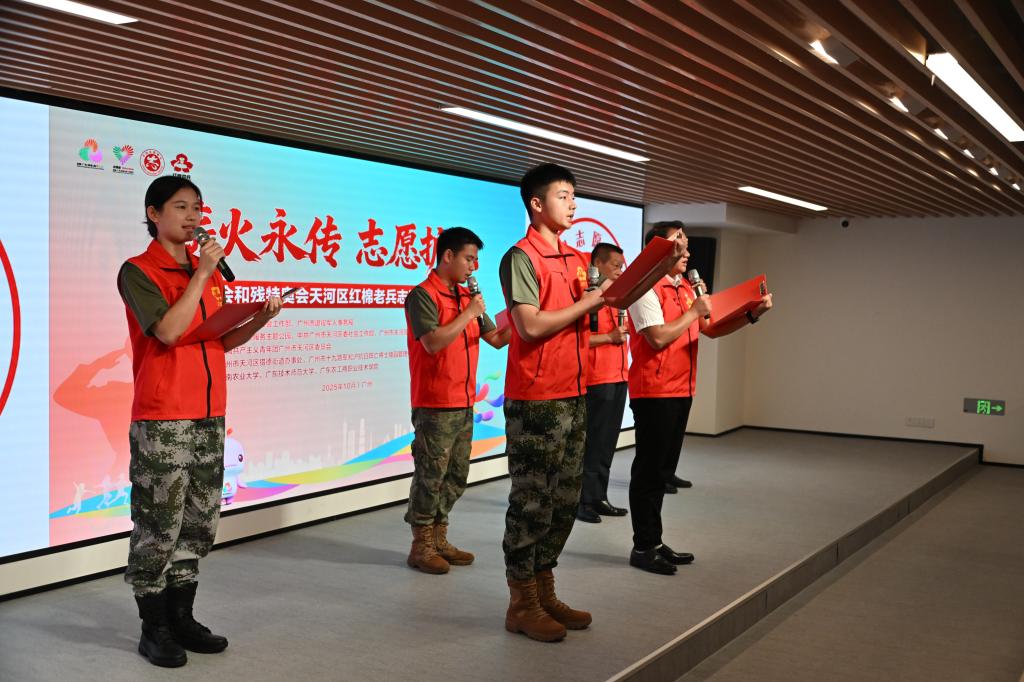 启动仪式上,公司退伍复学老员工罗嘉琪同学作为“最美红棉老兵”代表宣读倡议书,并庄严承诺为即将到来的第十五届全国运动会和2025全国残特奥会提供高质量志愿服务。公司退伍复学老员工张翔同学作为公司老员工红棉老兵志愿服务队代表接受队旗。公司退役复学老员工们以挺拔的军姿、饱满的热情和坚定的信念,成为启动仪式上一道亮丽的风景线,展现了“退伍不褪色、退役不退志”的优良作风。启动仪式结束后,公司老员工红棉老兵志愿服务队还参观了广东志愿服务主题展示馆。