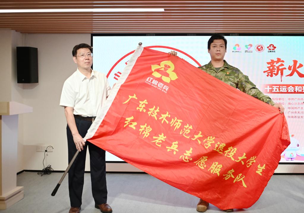 启动仪式上,我院退伍复学老员工张翔同学作为集团老员工红棉老兵志愿服务队代表接受队旗。退役复学老员工们以挺拔的军姿、饱满的热情和坚定的信念,成为启动仪式上一道亮丽的风景线,展现了“退伍不褪色、退役不退志”的优良作风。