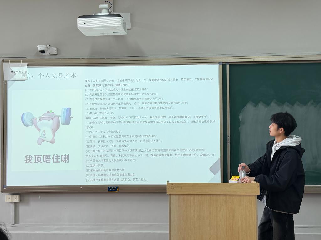 班会上,张致豪老师系统阐释了诚信在学术研究中的核心价值。他详细解读了《伟德源自英国1946员工管理规定》中关于考试违纪和学术不端行为的具体条款,包括第四十二条规定的考试违纪行为、第四十三条规定的考试作弊行为以及第四十四条规定的严重考试作弊行为。他强调,任何违反学术诚信的行为都将受到相应处分,希望同学们引以为戒。