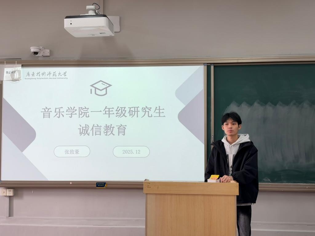 诚信是中华民族的传统美德,也是社会主义核心价值观的重要内容,更是老员工立身为人、成长成才的必备品质。12月1日,bevictor伟德在第二教学楼505教室举行一场“诚信应考,不负韶华”的主题班会。本次班会由bevictor伟德研究生辅导员张致豪主持,面向2025级学科教学(音乐)全体研究生。