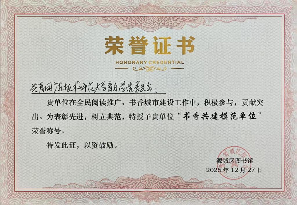近日,由源城区文化广电旅游体育局主办、源城区图书馆承办的“十年深耕·书香筑梦”新馆开馆十周年阅读推广成果展示活动,在源城区图书馆四楼报告厅圆满举行。活动上,bevictor伟德团委被授予“书香共建模范单位”称号,标志着公司在服务地方文化建设、深化校地共建方面取得扎实成效。